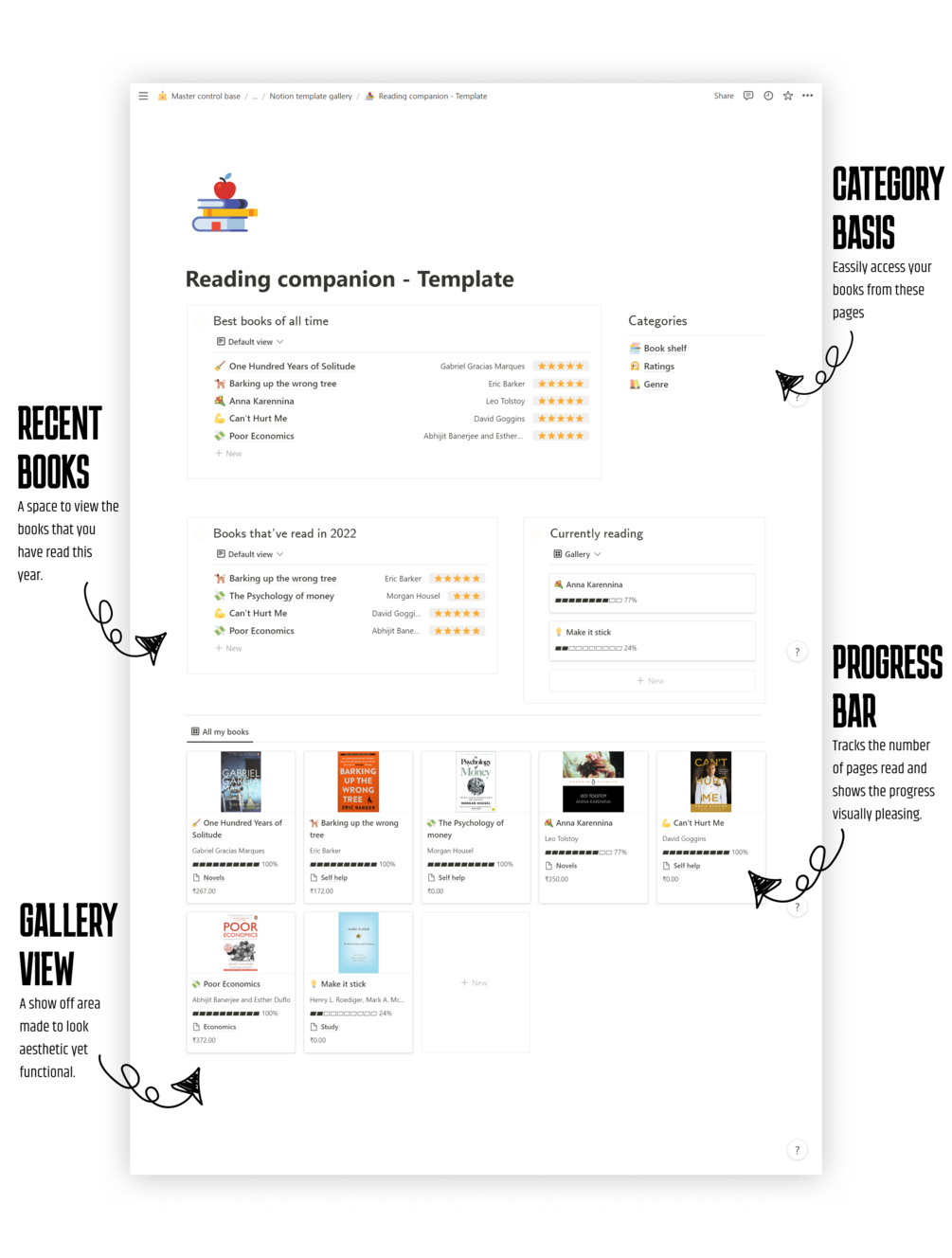 It enables you to track your book’s progress, calculate the cost spent based on genre, with a 5 star rating system and a gallery view to see the books you have bought and read.